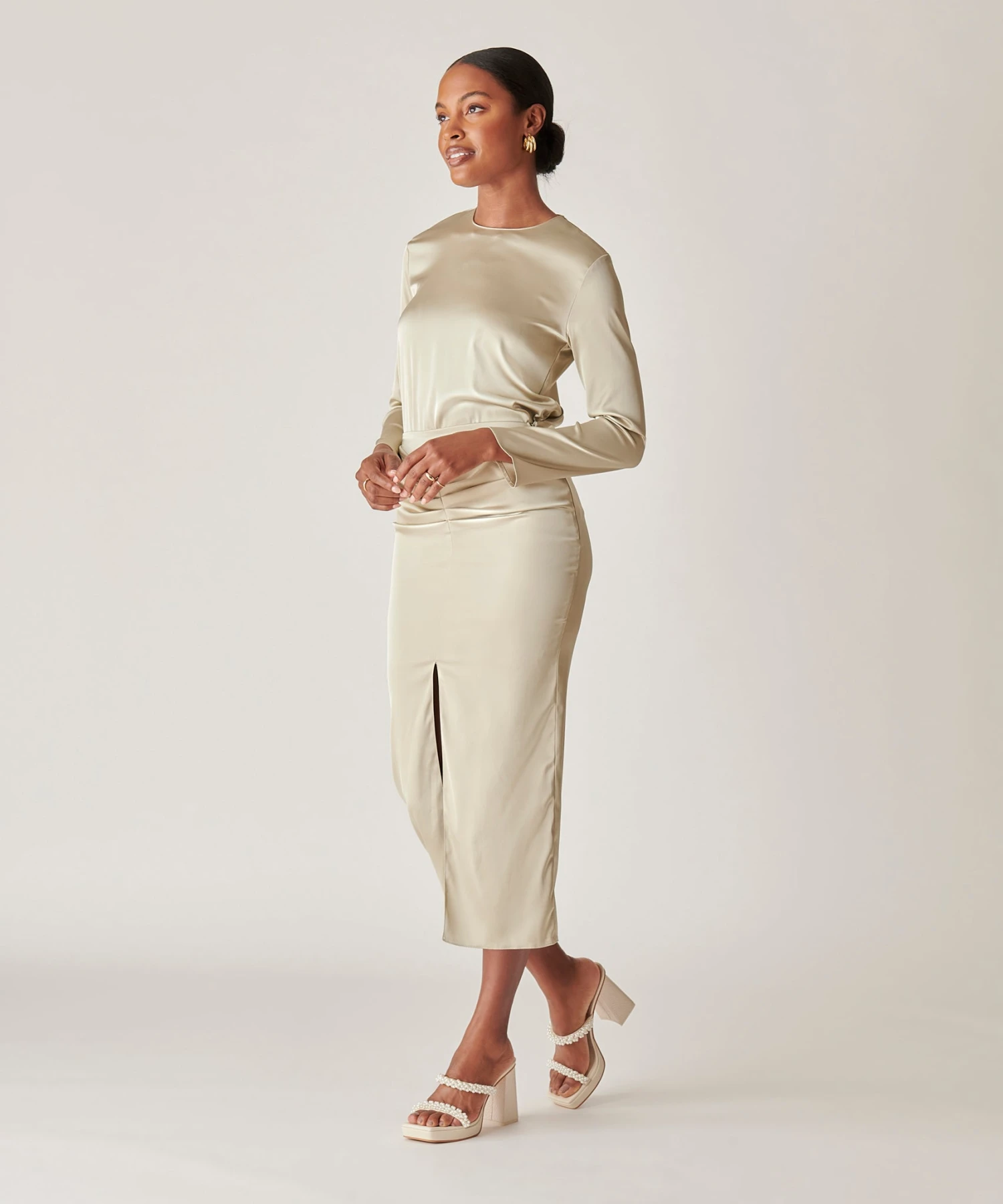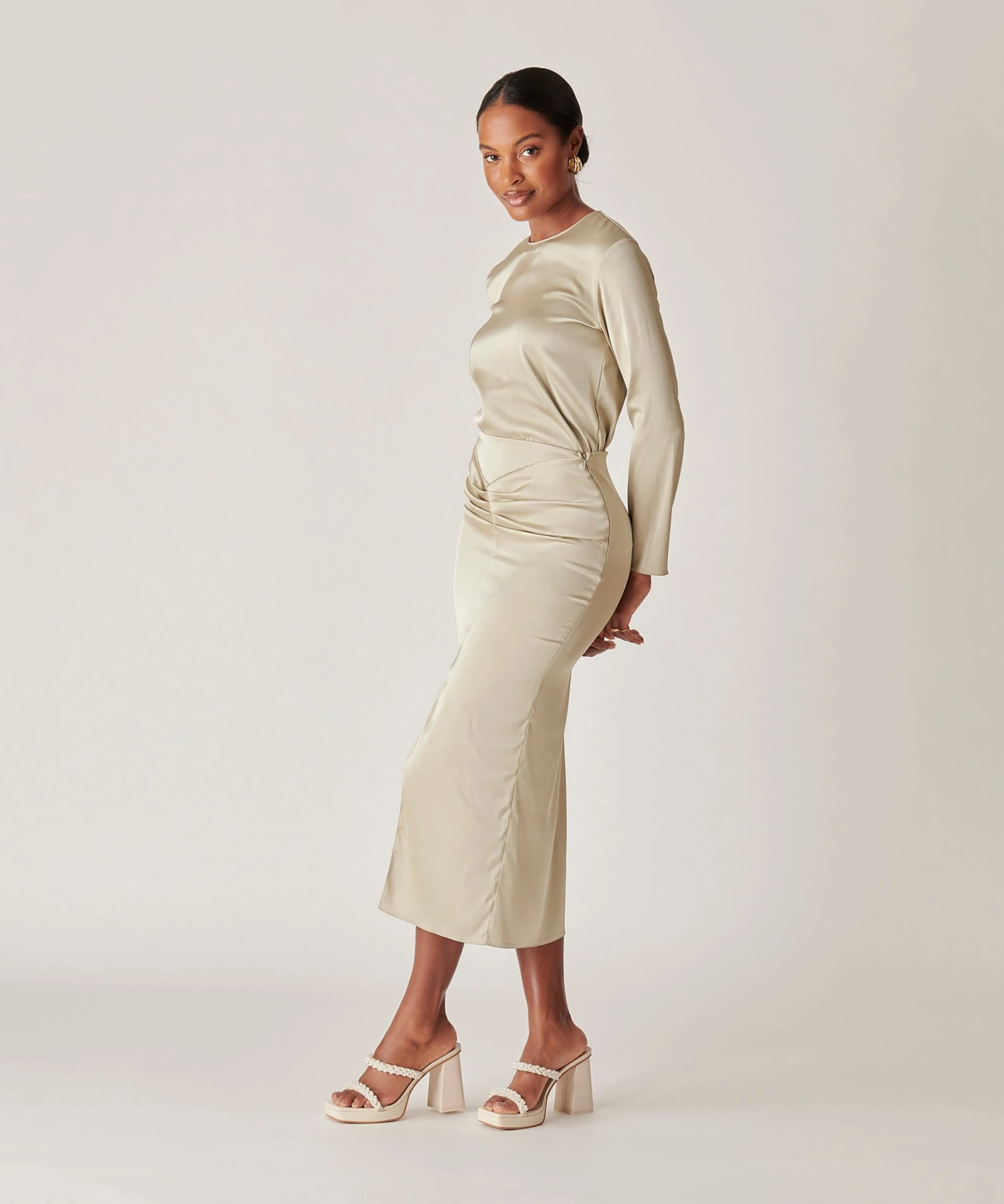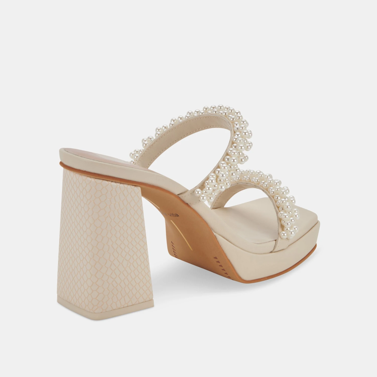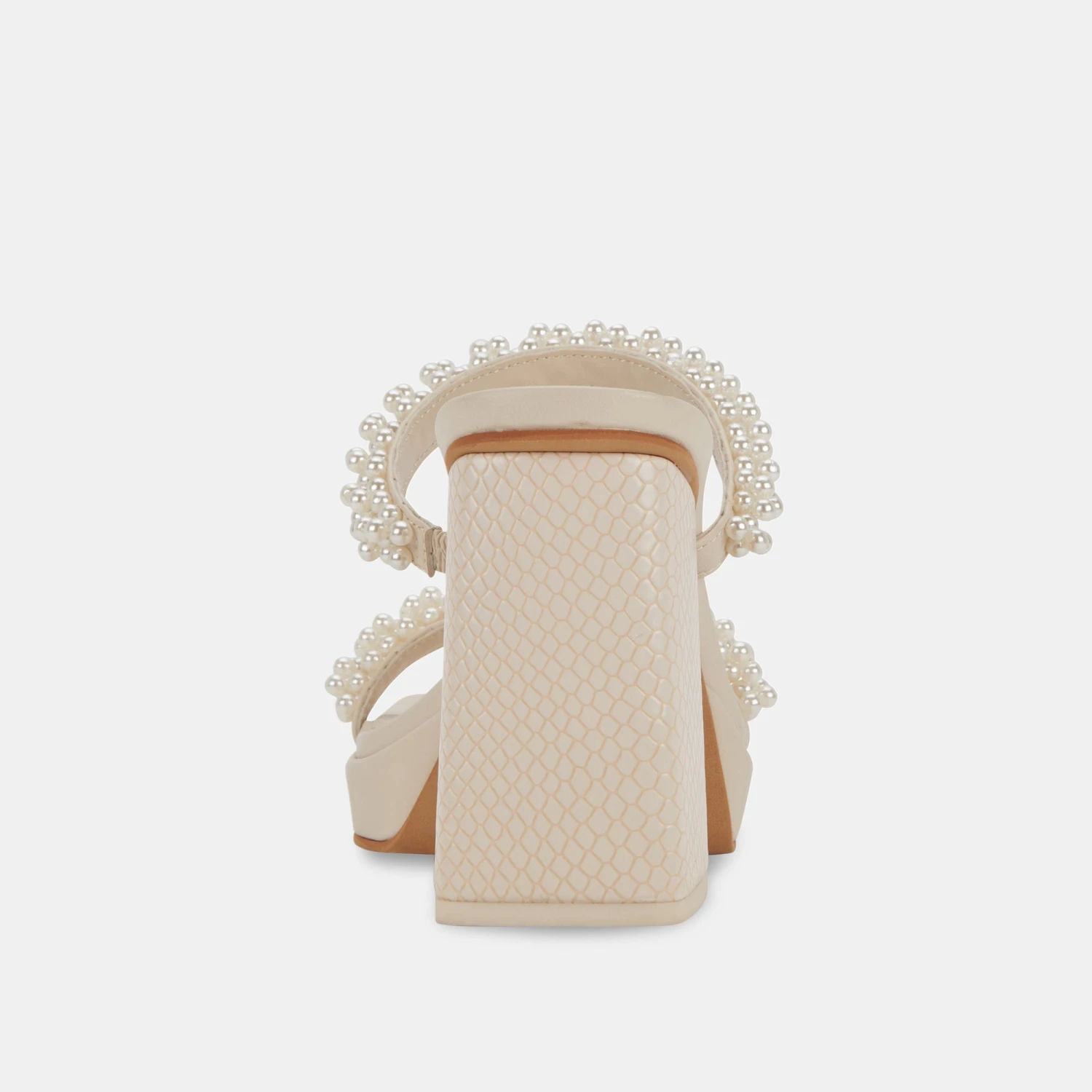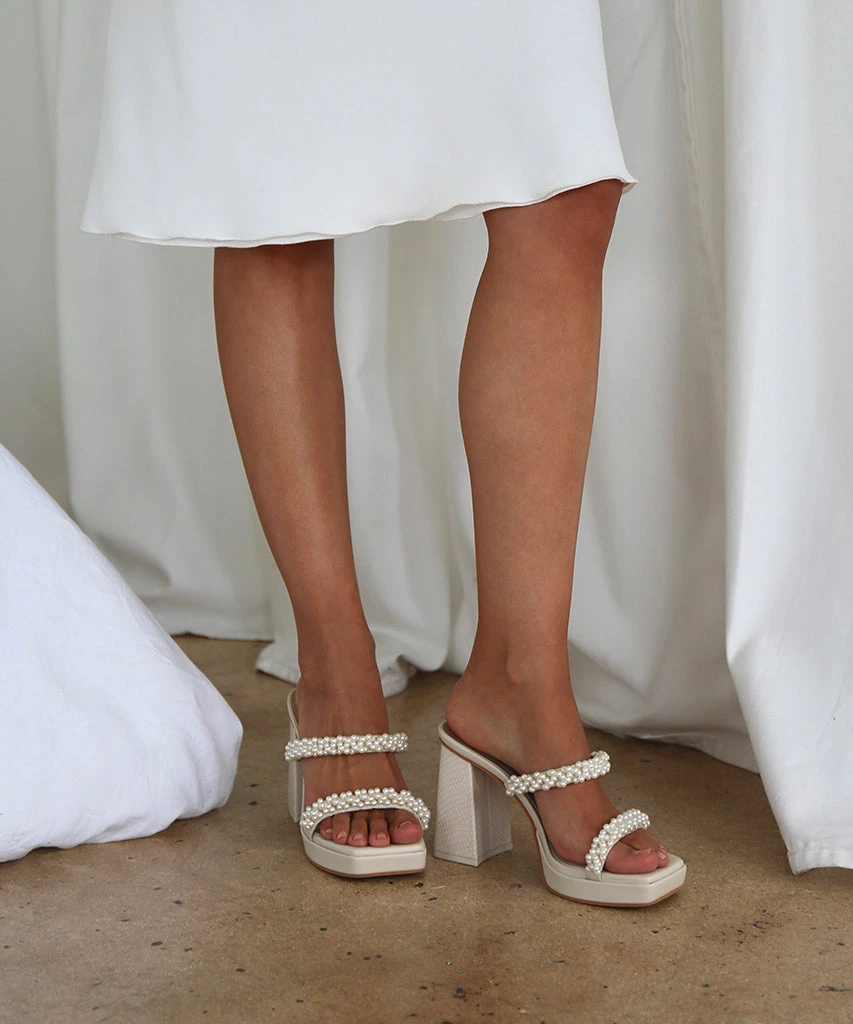 Delicate, pearl-encrusted straps + a chunky, sculptural heel = our new favorite way to wear the pearl trend. ARIELLE is the statement event heel for spring, taking you from weddings to rooftop parties in a snap.